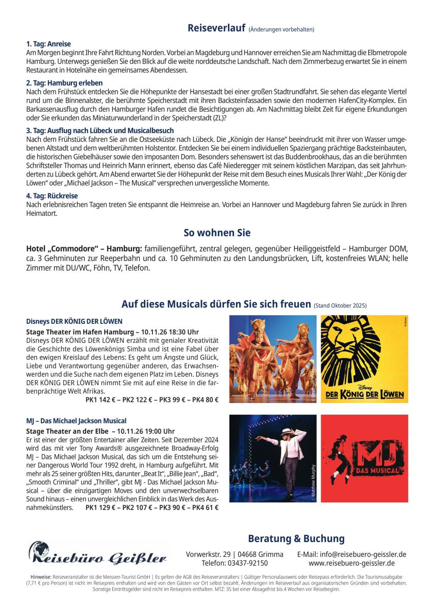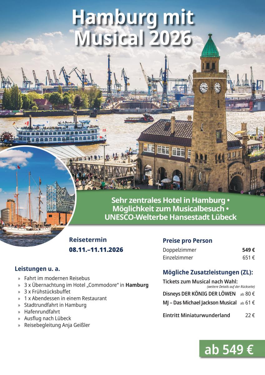 3x Übernachtung/FR, Stadtrundfahrt, Hafenrundfahrt, Ausflug Lübeck, Musicalbesuch